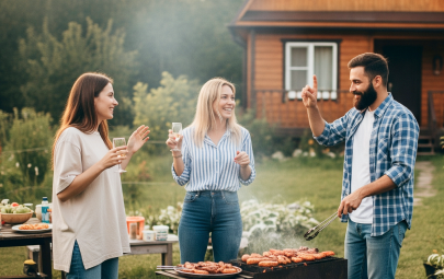 | В майские праздники хозяева дачи пригласили друзей на шашлыки, а они припарковали машину в гараже. |